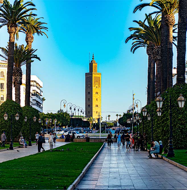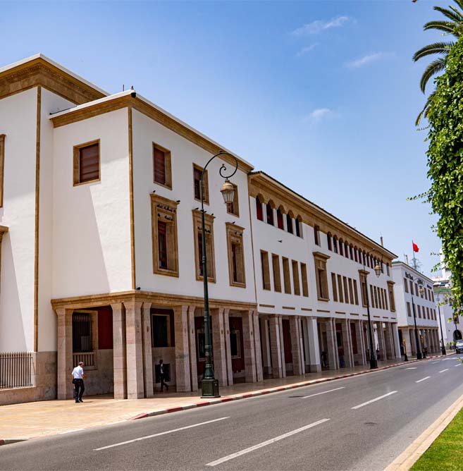 Mohammed V Avenue is one of Rabat’s most iconic thoroughfares, harmoniously combining modernity and architectural heritage. Stretching from Rabat-Ville train station to the Moroccan Parliament, this avenue is lined with historic buildings featuring neo-Moorish architecture dating back to the French protectorate, including the majestic Bank of Morocco, the Central Post Office, and Saint Peter’s Cathedral. A popular place for strolling, the avenue is bustling with cafés, shops, manicured gardens, and fountains. Day and night, it embodies the elegance of the capital and invites visitors to stroll at the pace of the city. It is also a hub for administrative and cultural institutions and places of interest, making Avenue Mohammed V a symbol of the harmonious urban planning of Rabat, a UNESCO World Heritage Site.