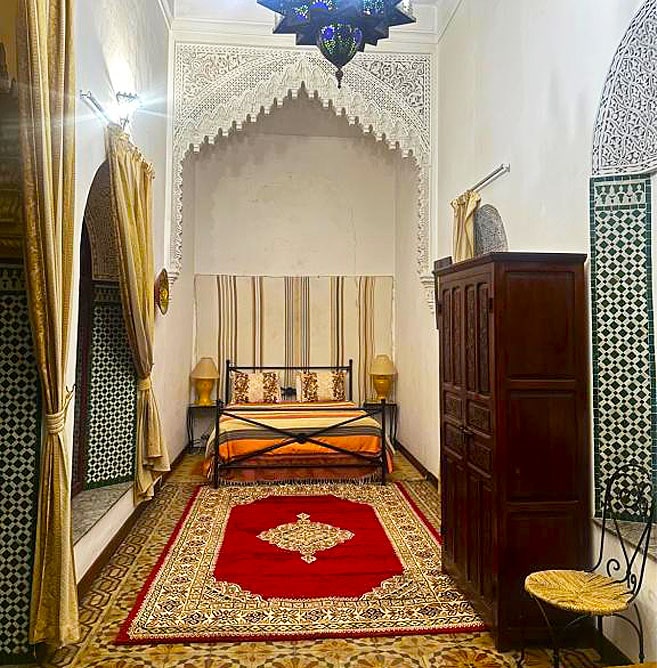 The Riad à la Belle Etoile is a guest house located in the medina of Salé, with architecture blending Arabic and Andalusian styles. It offers seven rooms decorated with themes inspired by Moroccan cities, all equipped with air conditioning, a private bathroom, and free Wi-Fi. The property has a spacious patio, a traditional hammam, and a terrace with views of Rabat and Salé, ideal for exploring local attractions.