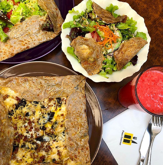 Pause Gourmet est un restaurant chaleureux situé au cœur de la ville, offrant une cuisine authentique et diététique. Depuis 2007, il propose un menu varié avec des crêpes et galettes sucrées et salées, des salades, ainsi que des plats à base de riz, viande et légumes. Le restaurant se distingue par ses options sans gluten, répondant ainsi aux besoins alimentaires divers. Le cadre intime est parfait pour des repas en famille ou entre amis, et des services comme des sièges extérieurs, l’accès aux fauteuils roulants et le Wi-Fi gratuit sont également proposés.
