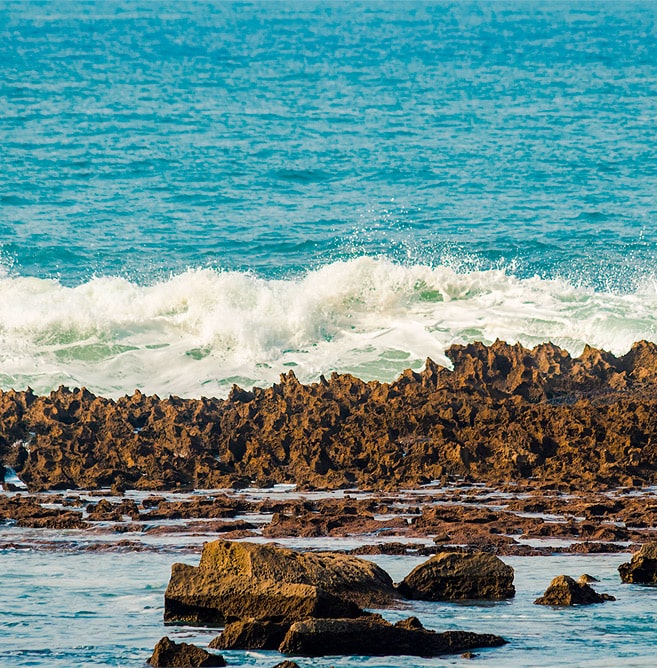 Située au sud de Rabat, la Plage de Harhoura est l’une des destinations balnéaires les plus prisées de la région. Cette plage s’étend sur plus de 500 mètres et est entourée d’une barrière rocheuse naturelle, offrant ainsi une baignade en toute sécurité. À proximité, une forêt de pins d’Alep s’étend sur plusieurs hectares, offrant un cadre idéal pour la randonnée ou le jogging. Ce mélange unique de mer et de nature fait de la Plage de Harhoura un lieu parfait pour une journée de détente en famille ou entre amis. La plage est facilement accessible depuis la route côtière (RR 322) et l’autoroute (A1), et elle est reliée aux communes limitrophes (Témara et Ain Attiq) par plusieurs ponts.